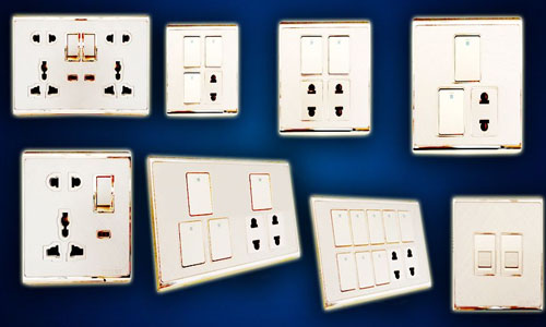 SWITCHES, SOCKET, SURFACE BOX, HOLDER, BELL PUSH, FAN REGULATOR, BED SWITCH, CEILING ROSE, SPIKE GUARD & ALL TYPE OF MODULAR ACCESSORIES.